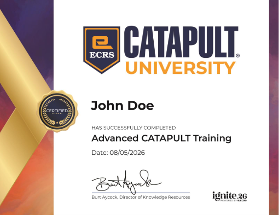 Ignite 2026 is where big ideas turn into real momentum—and this year, we’re giving you the chance to go further with Advanced CATAPULT Training, delivered as a series of focused, hands-on workshops led by ECRS product experts. By pairing deep technical skill-building with the energy, access, and community that only Ignite brings, these sessions are designed to help you sharpen the workflows that matter most, solve real operational challenges faster, and leave the conference not just inspired—but a much higher level of CATAPULT aptitude and know-how.